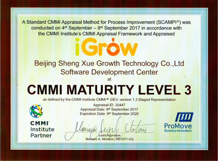 北京盛學成長科技有限公司成立于2011年1月,擁有高新技術(shù)企業(yè)、軟件企業(yè)、CMMI三級認證等資質(zhì),以及軟件著作權(quán)